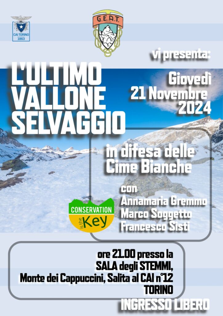 Giovedì 21 novembre 2024 la sottosezione GEAT è lieta di invitarvi al Monte dei Cappuccini a Torino per una serata dedicata al Vallone delle Cime Bianche e al suo grande valore naturalistico, messo a repentaglio dal progetto di costruzione di un impianto a fune.
