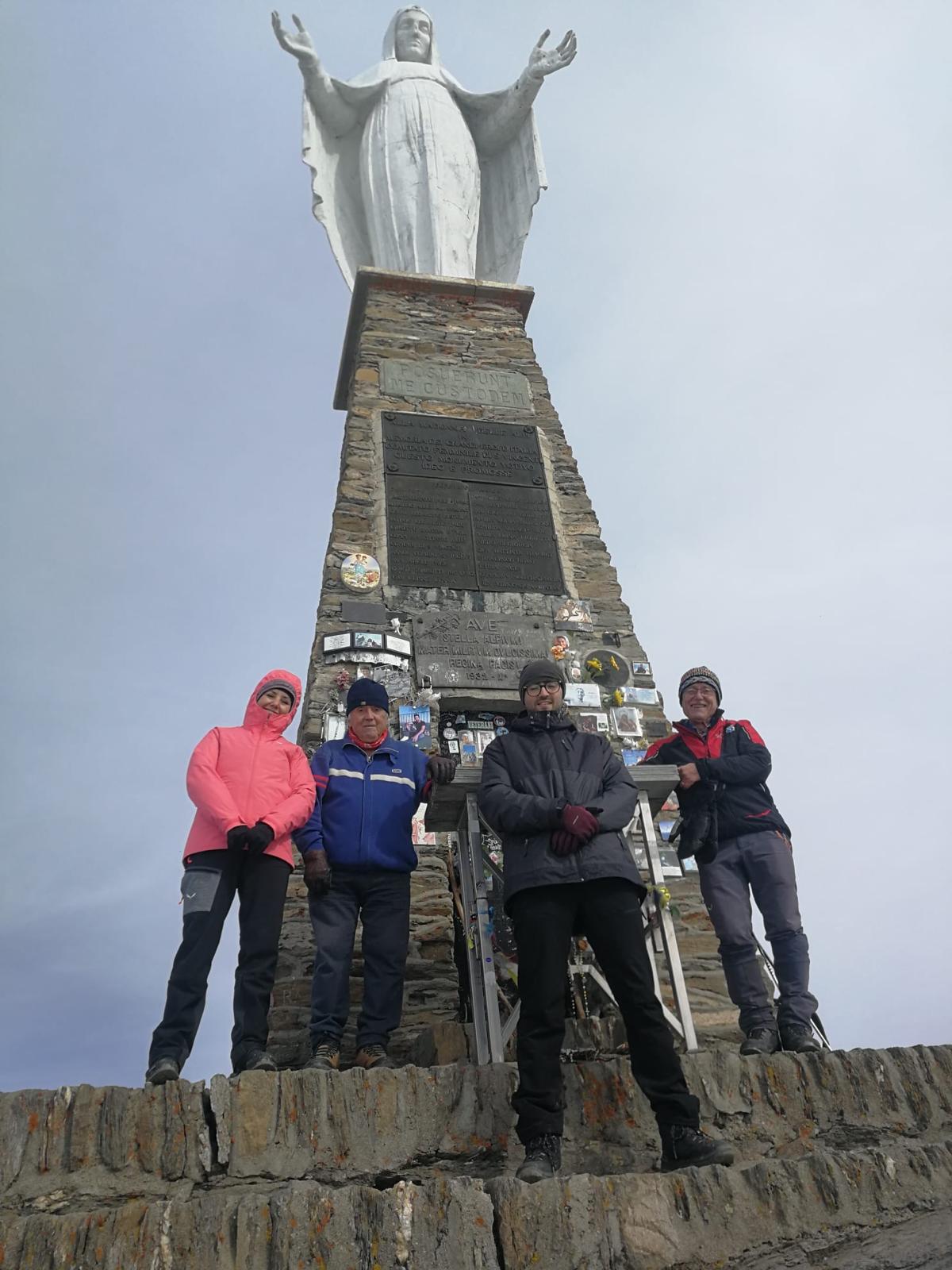 Partenza alle 9 da Barmasc, sotto una coltre di nubi, che impedisce la vista delle montagne circostanti e della nostra meta. Temperatura attorno allo zero. Salita ripida al colle Portola con alcuni tratti gelati, con poco ghiaccio, superati agevolmente. Dopo breve sosta al colle si inzia la salita di cresta. A circa 2.500 m di altezza, sono le 11, riusciamo a forare la coltre di nubi: compaiono illuminato dal sole i monti valdostani, tutti i 4.000, in bella vista il più vicino Monte Rosa. In cima alle 11.30 circa, ci copriamo bene, ci godiamo il panorama e scattiamo le foto di gruppo. Siamo nuovamente alle auto alle 14. Ritorno con sosta al bar e al caseificio, con acquisto di formaggi e prodotti locali.
